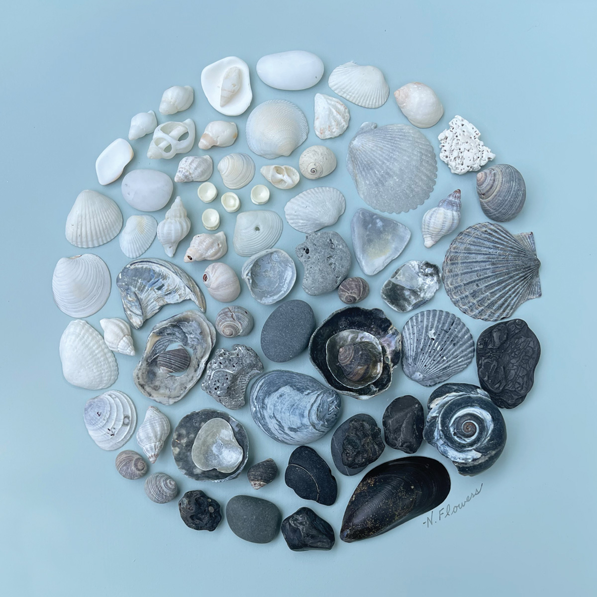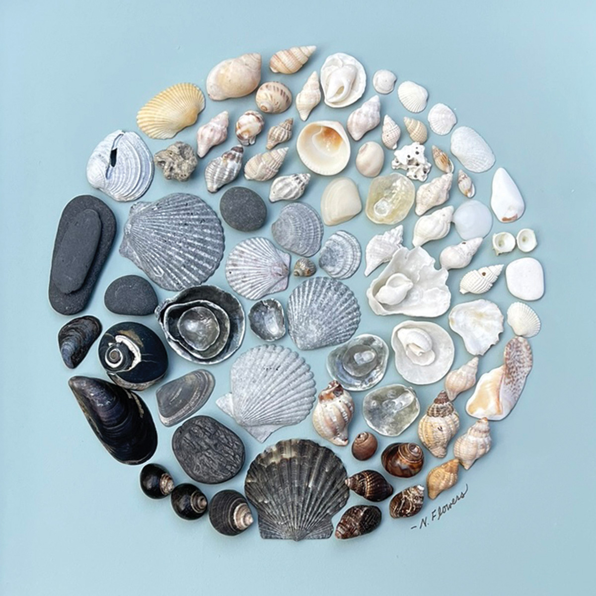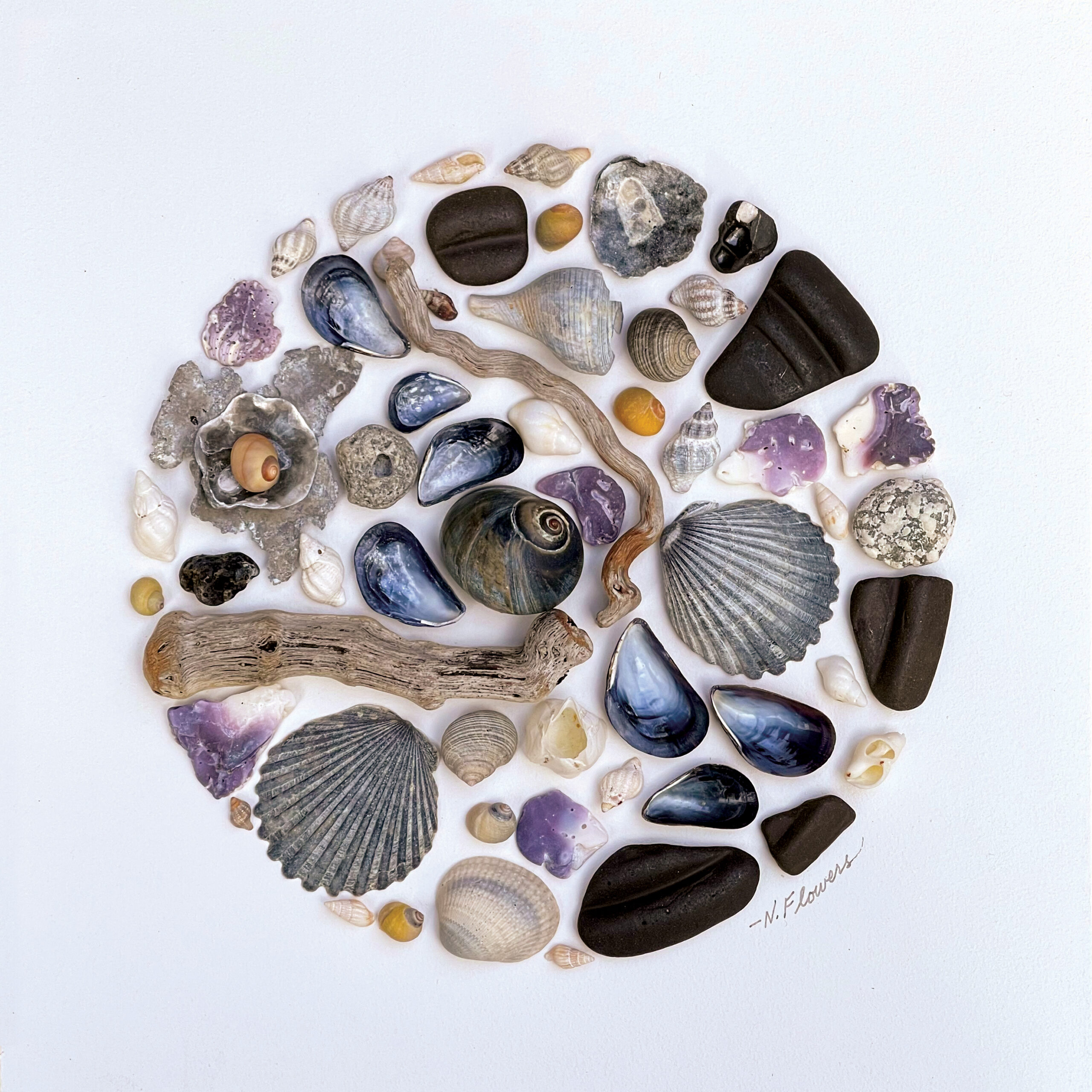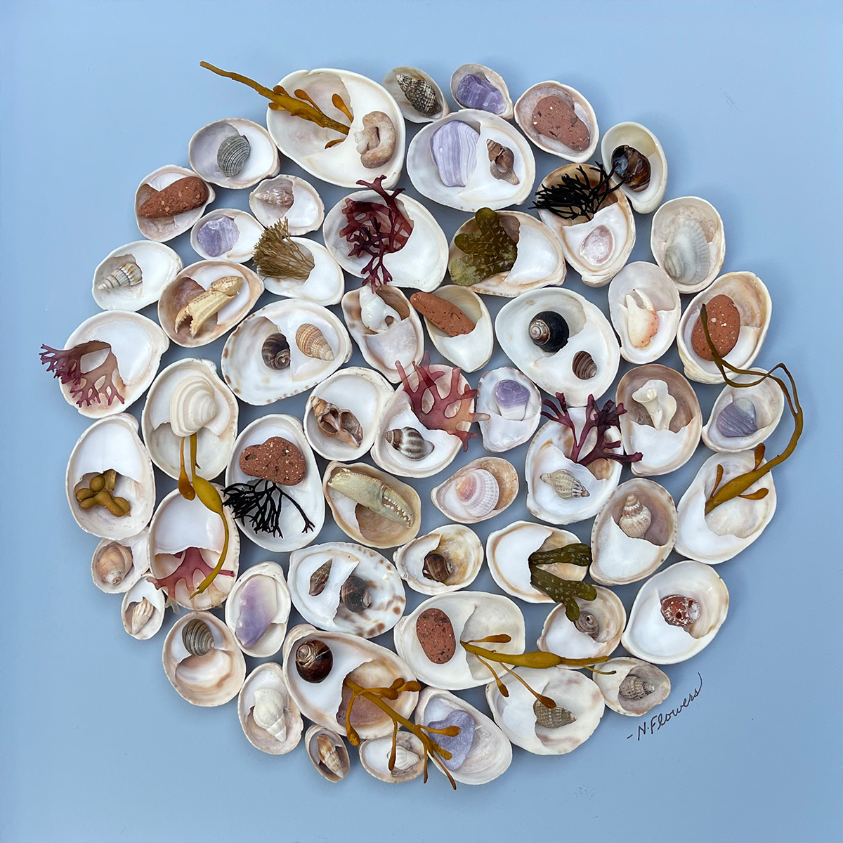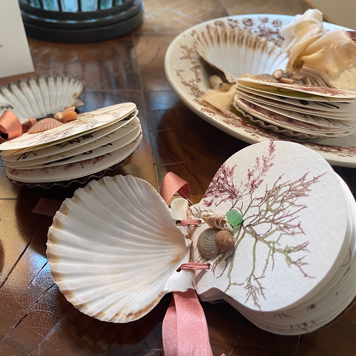 Scallop Shell Seaweed Storybooks Three-dimensional Approximately 4 x 4 inches | Pressed seaweed on watercolor paper bound with raw silk ribbon