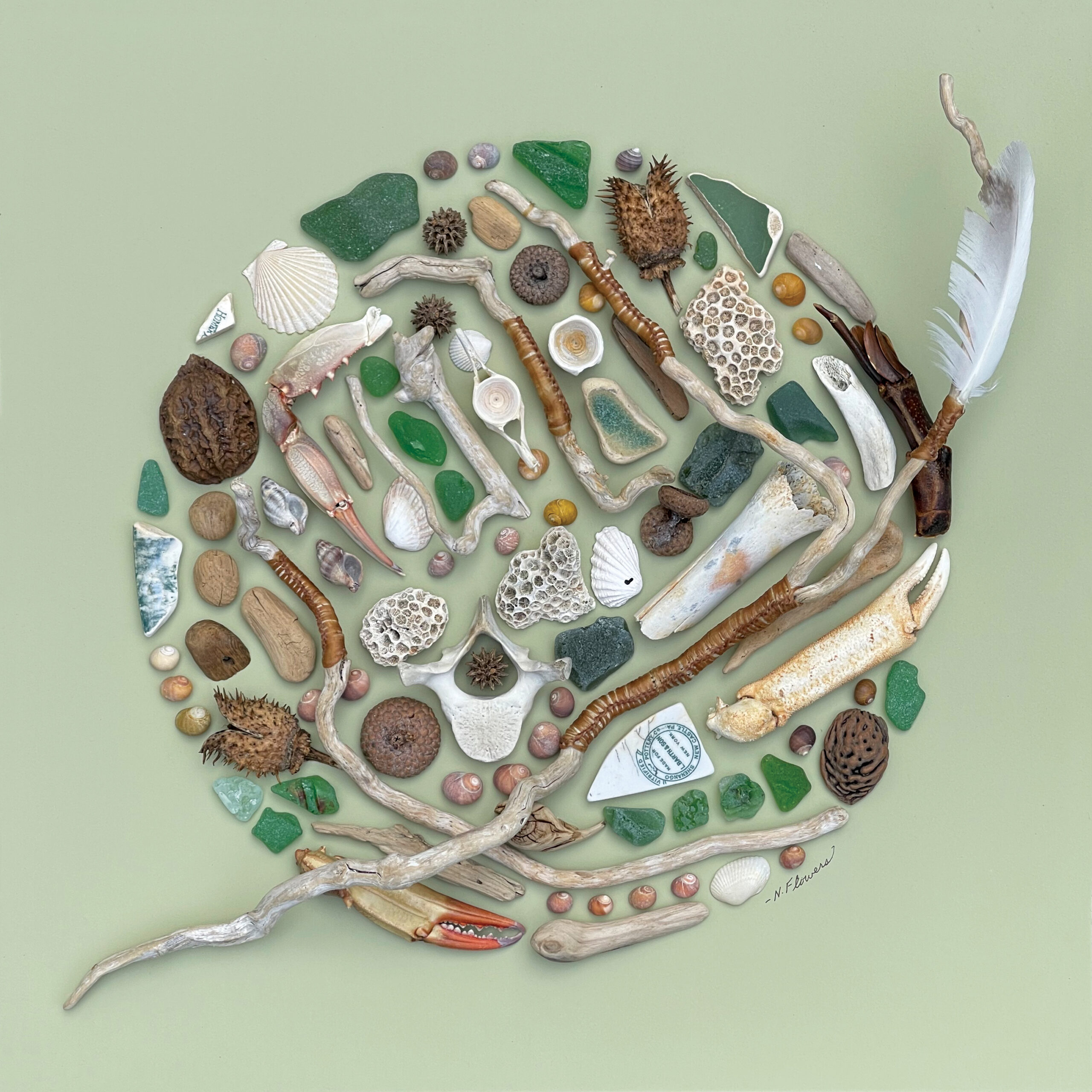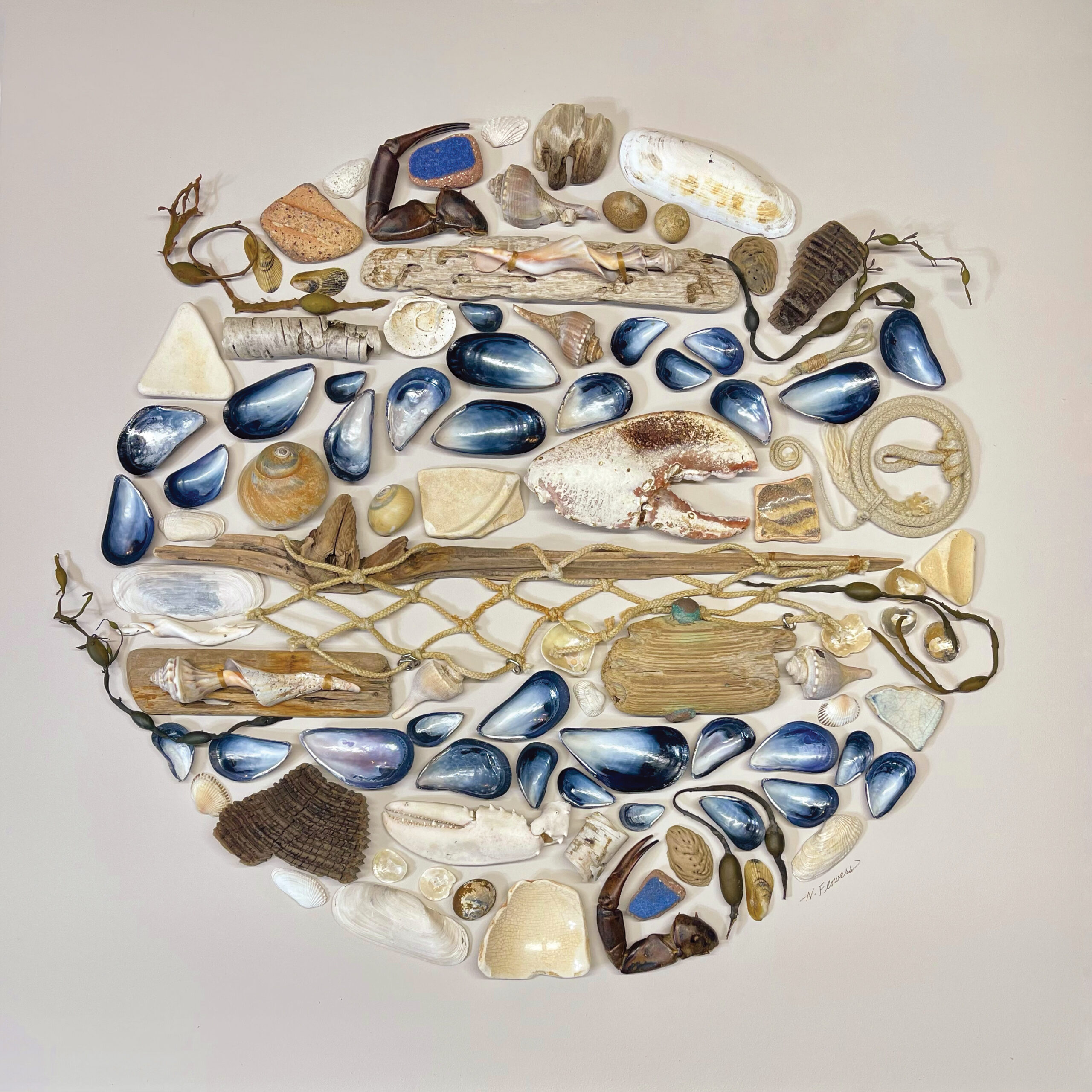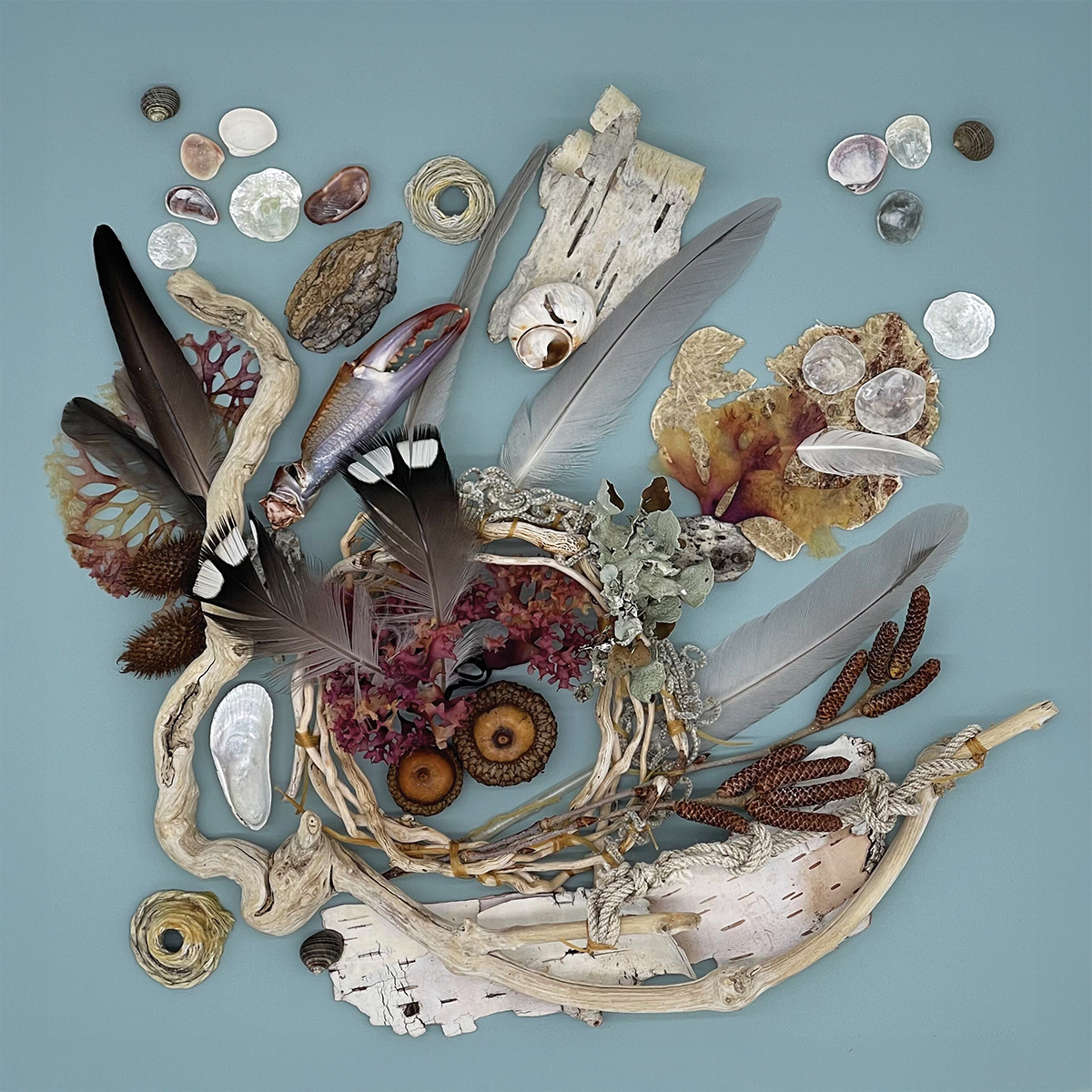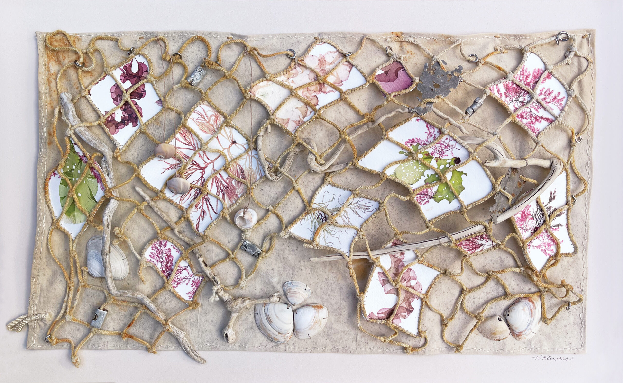 The Net Result Artifacts 25 x 16 inches | Mixed media, salvaged sailcloth, lobster netting, and pressed seaweed