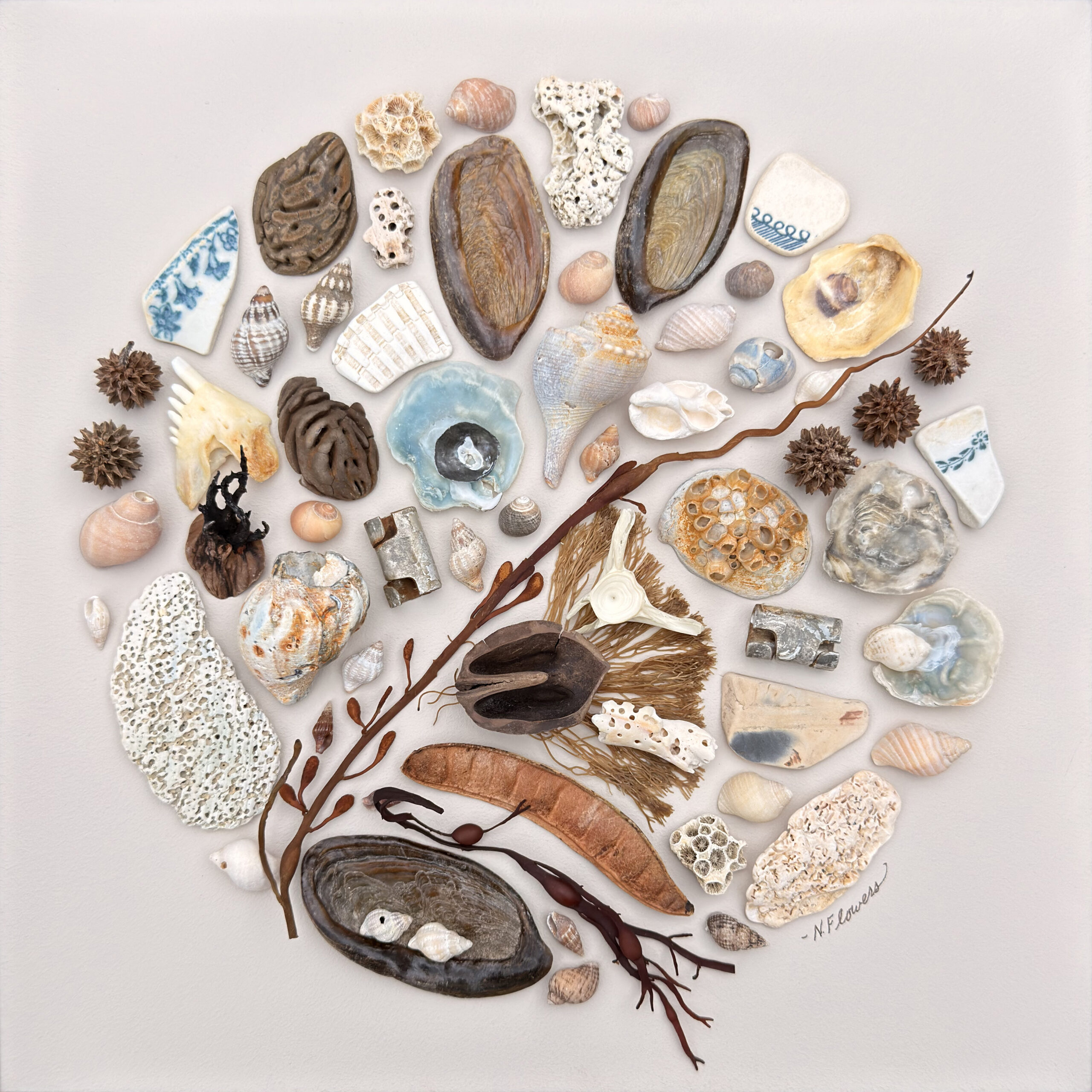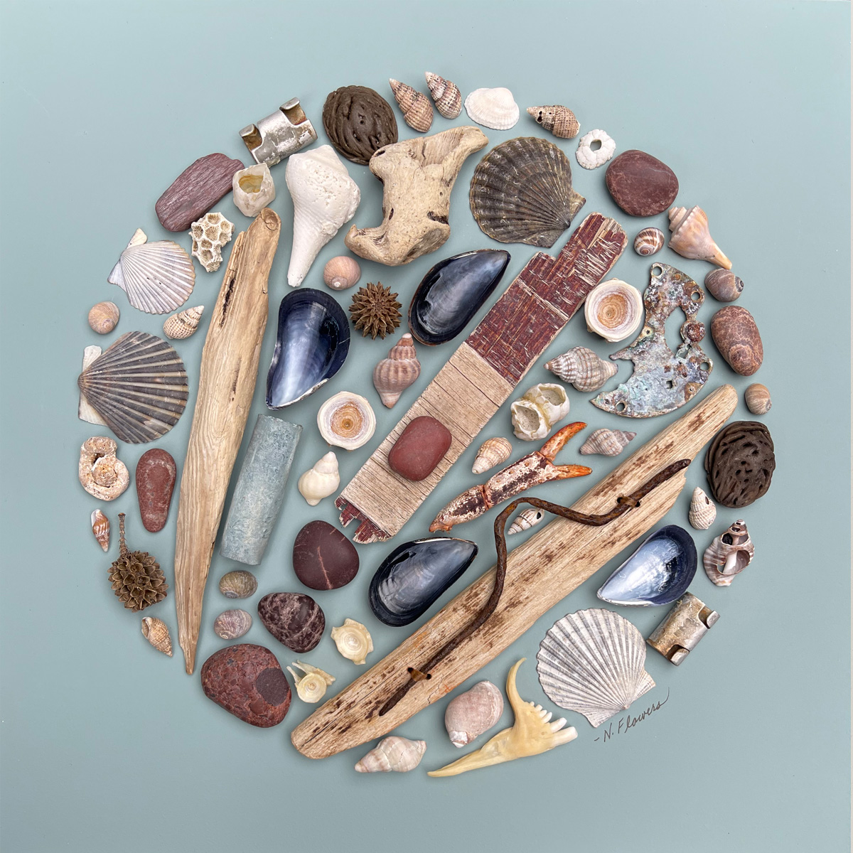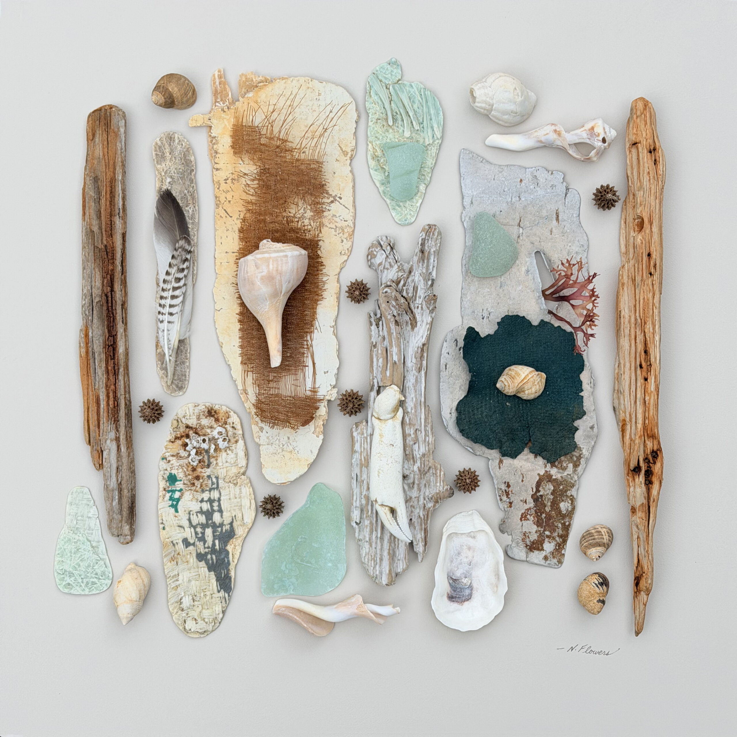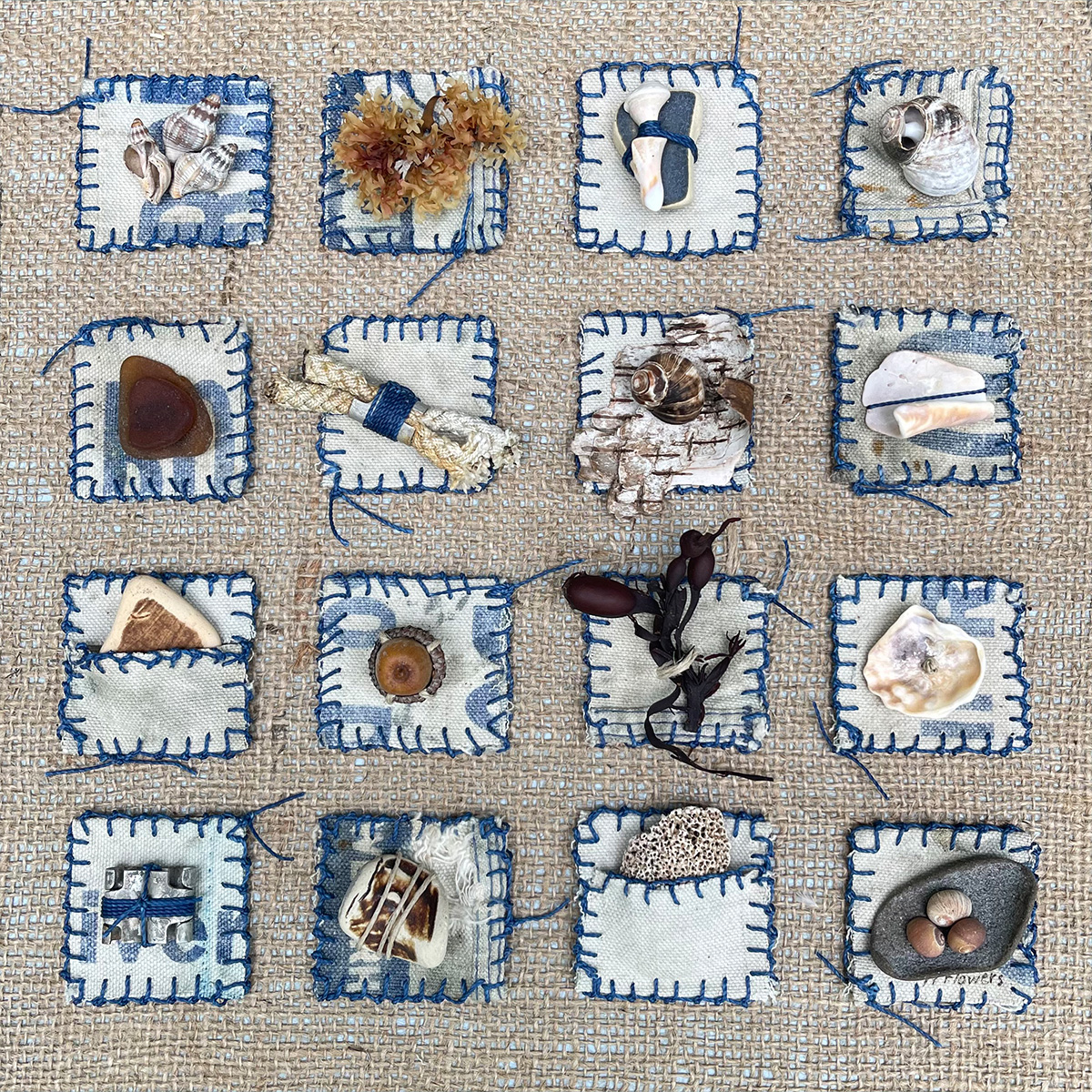 Sakonnet Artifacts Artifacts 14 x 19 inches | Mixed media on painted hardboard and reclaimed sailcloth