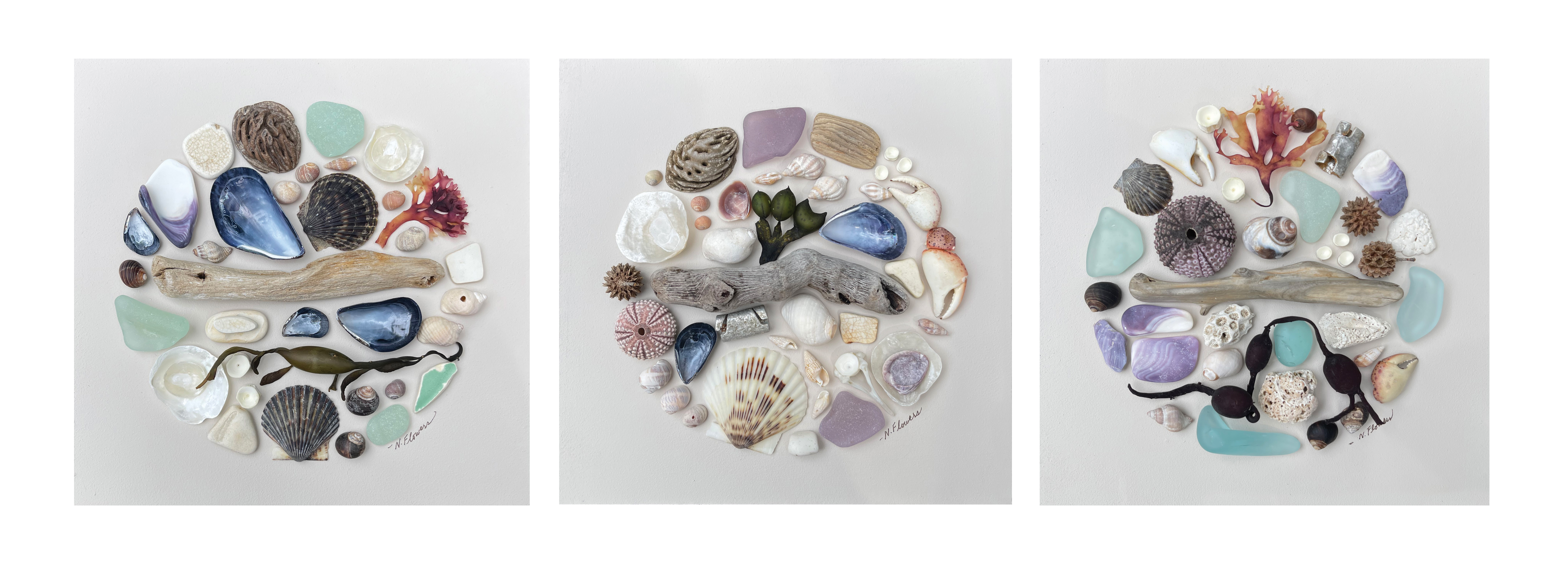 Three Sides to the Sea Organic 7 x 7 inches | Series of three, individually framed | Mixed media on painted hardboard