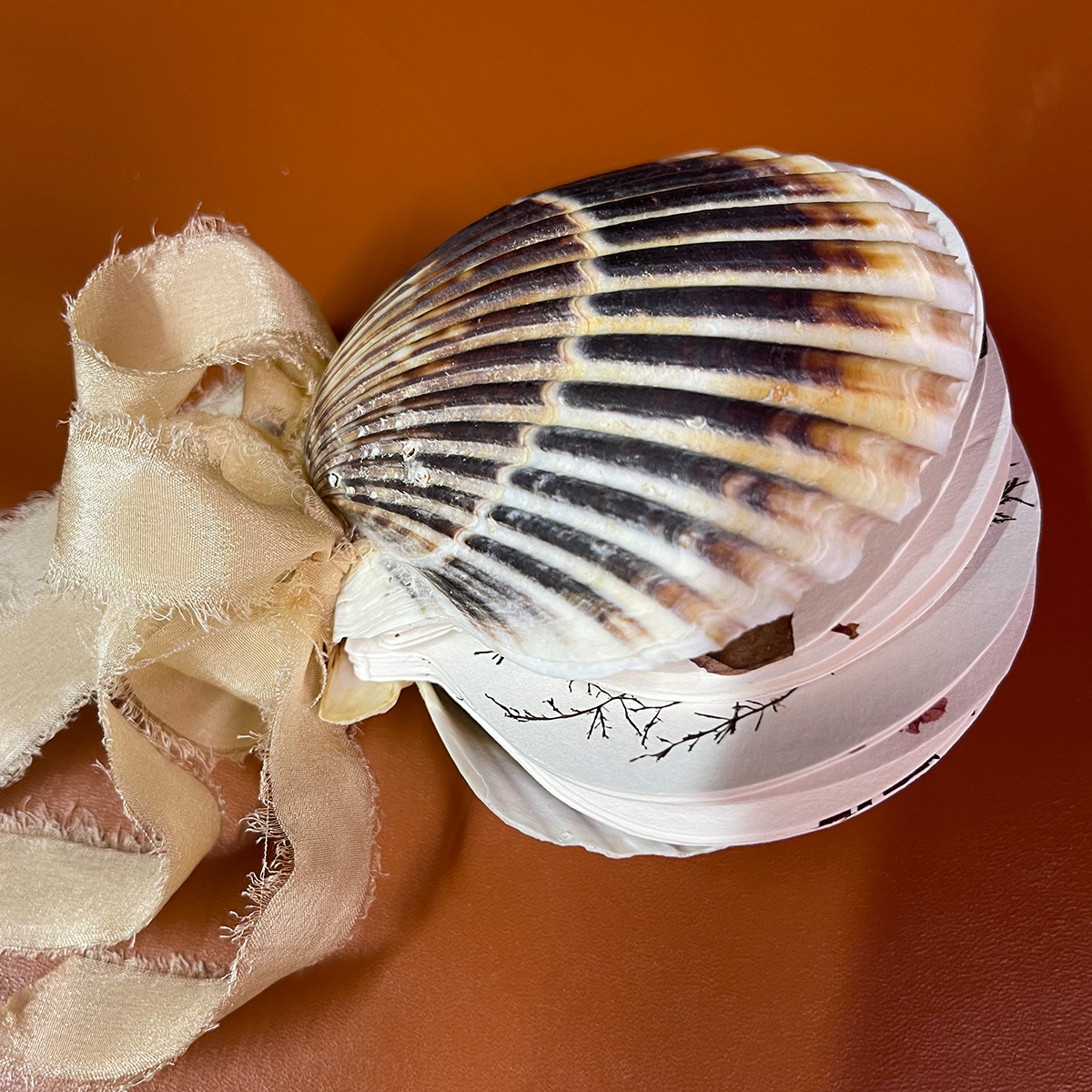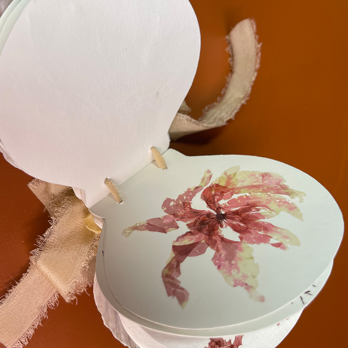 Approximately 4 x 4 inches | Pressed seaweed on watercolor paper bound with raw silk ribbon